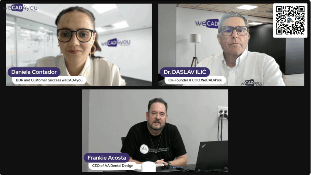 In this webinar, Frank Acosta (Owner, AA Dental Design) and Daslav Ilic (COO & Co-founder, WeCAD4You) share over 70 years of combined experience to help make the transition from conventional dentistry to digital protocols easier and more efficient than ever.